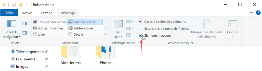 Si vous avez besoin de voir ou de modifier ces fichiers ou dossiers cachés, il suffit de suivre le tutoriel ci-dessus et d’activer l’option «Éléments masqués» sous l’onglet «Affichage».